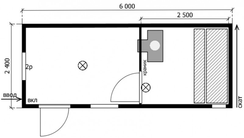 Длина - 6.0 м; Ширина - 2.4 м; Высота - 2.5 м.
